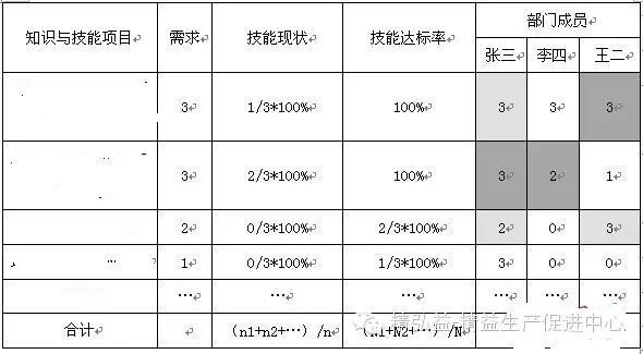 在推行这个训练计划的时候,必须使用下面的公式表示各组的多能工化率。