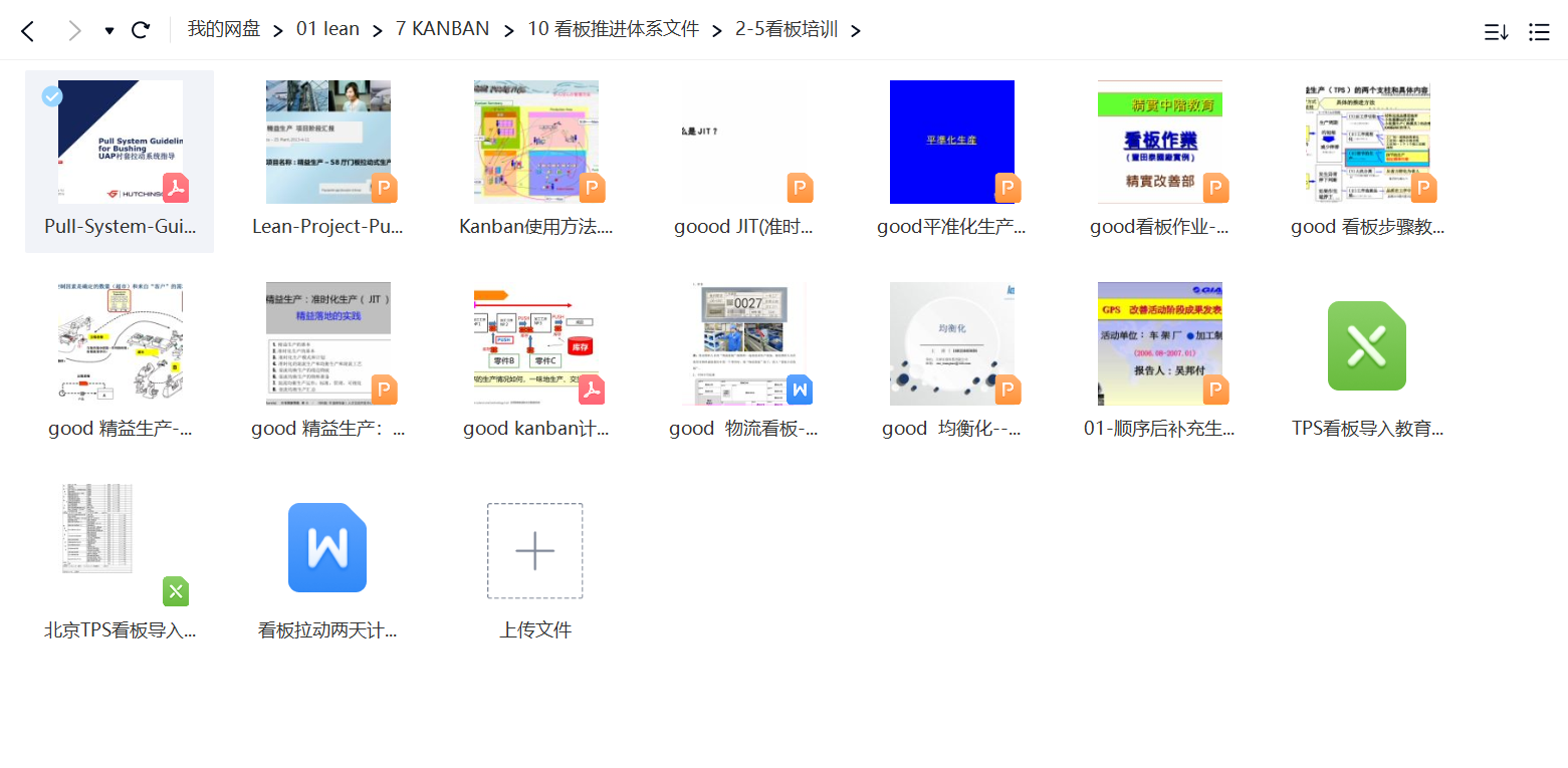 看板推进体系文件 文件大小1.98g(如果有问题可以加微信 13928439879) 包含详细看板推进方案和个个步骤详细的资料 1.整体文件目录,支持看板开展的所有过程 2.物与情报图相关资料 3.看板计划、分 ...